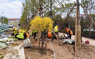 ■即墨全民健身中心配套绿化施工现场。 王 涛 摄