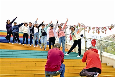 图12:5月1日,市民在“冰山之角”天台合影。 傅学军 摄