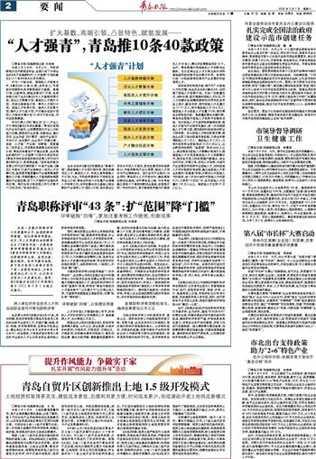 本报5月6日讯 土地资源高质量利用,是产业高质量发展的基础。记者了解到,继3月份出台产业用地弹性供应实施意见后,山东自由贸易试验区青岛片区再行创新之策,日前出台土地1.5级开发暂行办法,进一步加强土地集约节约利用效率,挖掘土地价值,形成滚动开发的土地供应新模式。