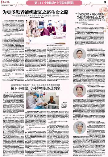 救患者于危难之间,助患者于情急之中。“互联网+护理”服务同样是护理工作的写照。未来,青岛西海岸新区中医医院将持续推进专科护理队伍建设,不断优化“互联网+护理”服务模式,以“一点红”带动“一片红”,提升人民群众的满意度及获得感,把优质护理服务送到更多患者最需要的地方,以大爱谱写南丁格尔精神的时代华章。