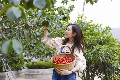 ▲游客在棉花村采摘樱桃。 贤峰 摄