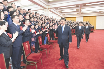 25日上午,习近平等来到人民大会堂北大厅,全场响起热烈掌声。习近平等走到代表们中间,同大家亲切交流并合影留念。