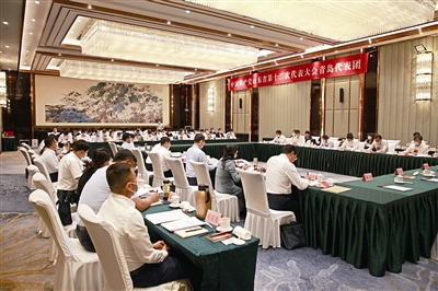 ■在省第十二次党代会上,青岛代表团代表讨论省党代会报告。 薛华飞 摄