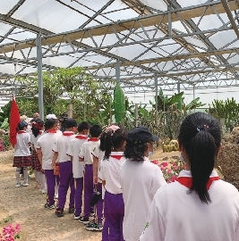 5月29日上午,来自胶州市慧海小学三个年级的15名学生在青岛福彩党员志愿者和老师的陪伴下参观了青岛市规模最大的“南果北种”基地——绿村生态园。绿村生态园位于胶州市大沽河畔的南王疃村,占地面积1500亩。热带植物园内种植有香蕉、芒果、柠檬、百香果、葡萄等100多种热带水果树;萌宠乐园里饲养着新西兰羊驼、梅花鹿、黑天鹅、孔雀等各种珍稀动物。通过青岛福彩中心举办的这次福彩公益课堂,让这些平时难得出门的孩子,进入一个新奇的世界,了解到了中国广袤土地上的数百种动植物。