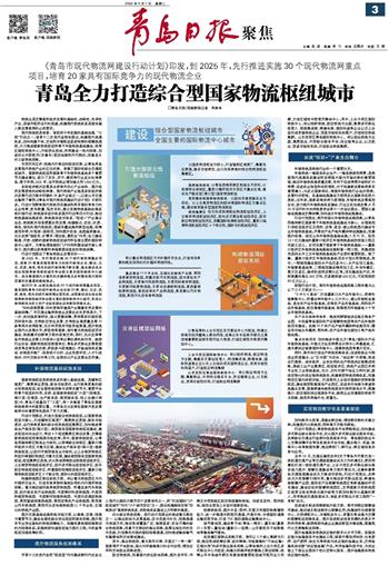 行动计划提出,打造大型综合性物流枢纽。以国家物流枢纽为核心,打造辐射区域更广、集聚效应更强、服务功能更优、运行效率更高的综合性物流枢纽集聚区。加快推进青岛生产服务型(港口型)、商贸服务型国家物流枢纽建设,激发枢纽间共生动力,带动6个枢纽集聚区联动发展,支撑国家物流枢纽网络框架功能发挥。其中,国家物流枢纽,以青岛西海岸新区制造业为依托,以前湾综合保税区、董家口循环经济示范区为重点区域,建设生产服务型(港口型)国家物流枢纽。以胶州市商贸服务业为依托,以上合商贸物流区和胶州湾国际物流区为重点区域,建设商贸服务型国家物流枢纽。枢纽集聚区是指,优化形成前湾航运物流枢纽经济区、上合商贸物流枢纽经济区、胶州多式联运枢纽经济区、胶东航空物流枢纽经济区、即墨国际陆港枢纽经济区、董家口临港物流枢纽经济区6个综合性、国际化的枢纽经济区。