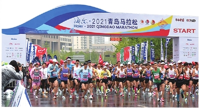 ▲2021年青岛马拉松比赛,吸引众多市民参与。 王 雷 摄