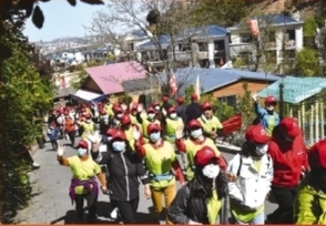 ■青岛市全民健身登山节举行,市民攀登毛公山。 王 雷 摄