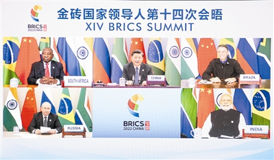 6月23日晚,国家主席习近平在北京以视频方式主持金砖国家领导人第十四次会晤并发表题为《构建高质量伙伴关系 开启金砖合作新征程》的重要讲话。 新华社照片