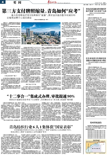 本报7月12日讯 记者从今天举行的全国纺织工业先进集体劳动模范和先进工作者视频表彰大会上获悉,青岛乐好服饰股份有限公司5G+工业互联网工厂荣获“全国纺织工业先进集体”称号;青岛海丽雅集团有限公司技术中心副主任徐连龙,青岛纺联控股集团有限公司常务副总经理朱建平,青岛宏大纺织机械责任有限公司党委书记、总经理邵明东,青岛东佳纺机(集团)有限公司技术中心主任纪合聚,即发集团有限公司工人杨帆和迟守年等6人荣获“全国纺织工业劳动模范”称号,获奖数量位居全省首位。