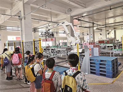 刚刚过去的周末,一场崂矿基地与海底世界的“上山下海”奇妙科普研学营吸引了30多位中小学生的加入。在这场研学活动中,他们用一天的时间,开启了“逛海底,品崂矿”的科普研学之旅。在崂山矿泉水北龙口生产基地,机械手码垛机引起不少同学的兴趣,整个过程中,大家不仅学习了水知识,还对工匠精神有了理解和认识。在青岛海底世界,参观之余,专业讲解及科普讲座让他们加深了对海洋的认识。