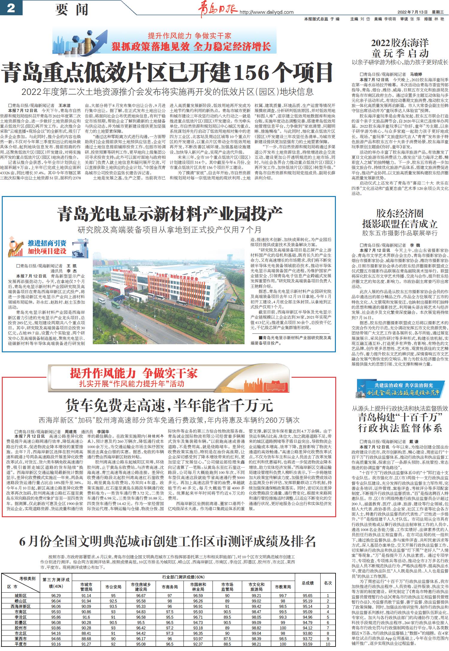 青岛重点低效片区已开建156个项目