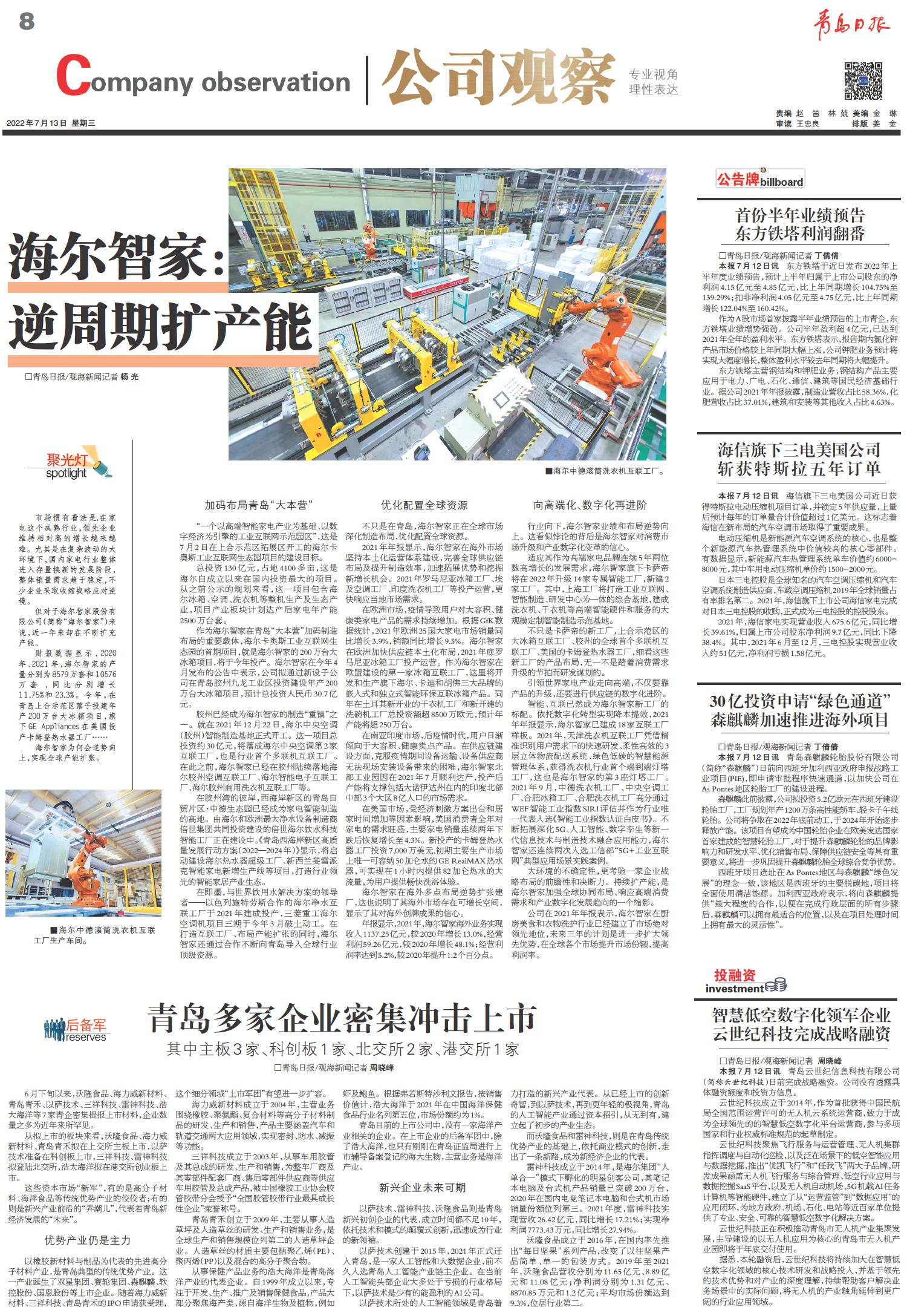 海尔智家:逆周期扩产能