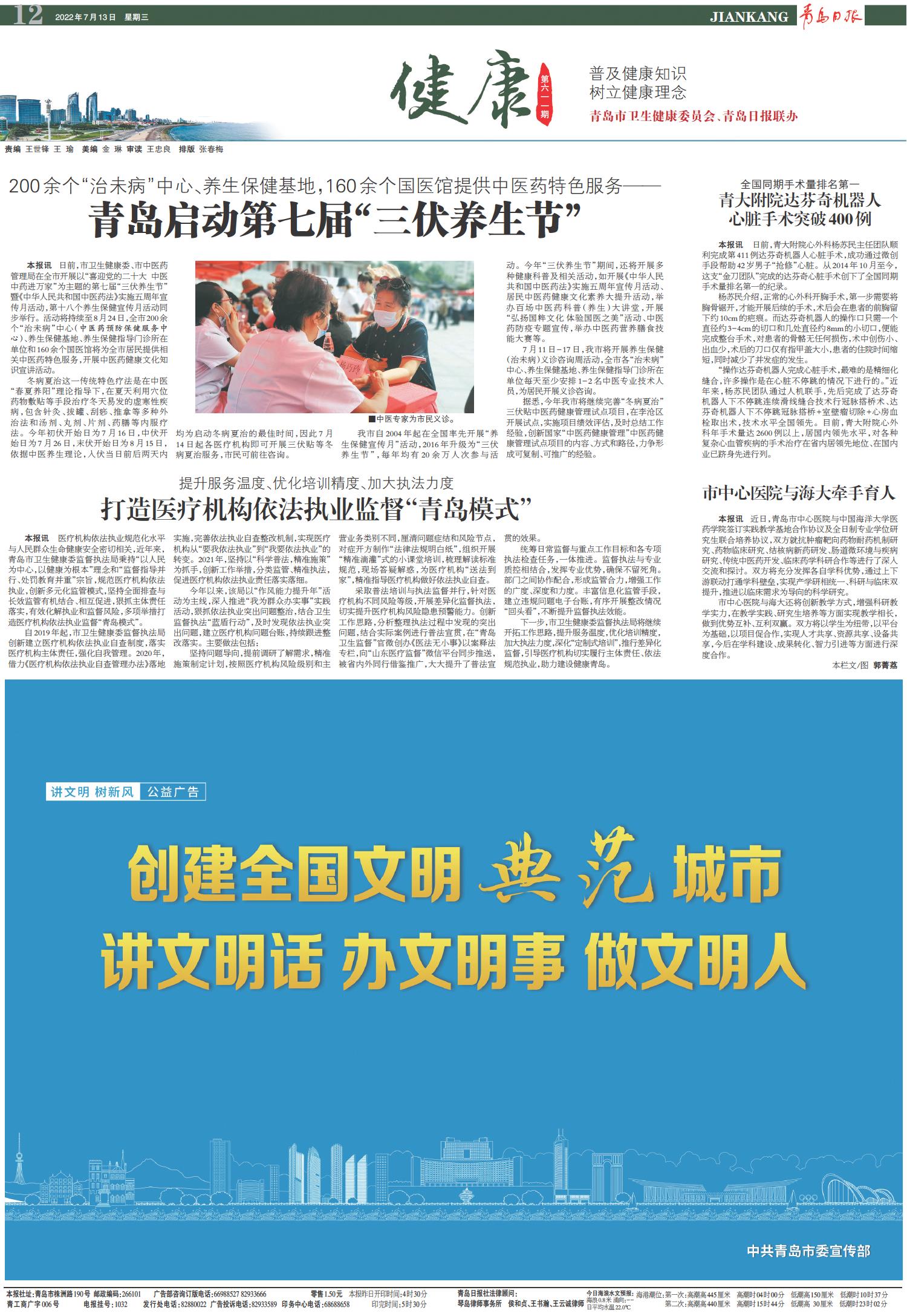 青岛启动第七届“三伏养生节”