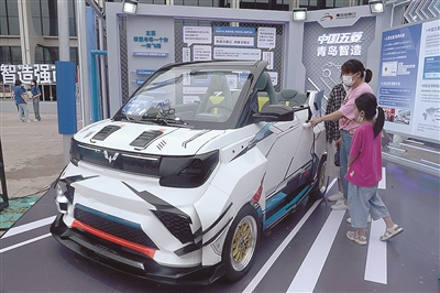 ■市民体验新能源五菱敞篷汽车。傅学军 摄