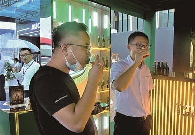 ■参会者品尝青岛啤酒新品。 傅学军 摄