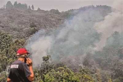 ■7月16日,消防员在葡萄牙阿马兰蒂的布斯特洛村附近观察火情。 新华社照片
