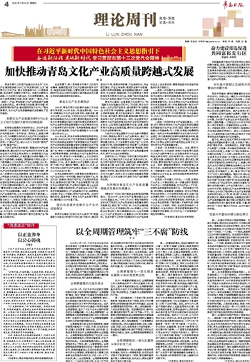 一是进一步完善产业扶持政策。发展文化产业是提升城市综合竞争力和建设新时代社会主义现代化国际大都市的战略选择,但文化产业综合性极强,资源、人才、资本、科技、市场等都在其中发挥着重要作用。应立足青岛文化产业发展实际和未来发展趋势,进一步统筹制定新一轮文化产业发展规划及扶持政策,从发展空间、财税金融、市场环境、消费升级等方面,不断加大对市场主体培育、内容创作生产、文化贸易拓展、文化金融合作、文化人才引育等的扶持力度,加快推动文化产业创新发展。