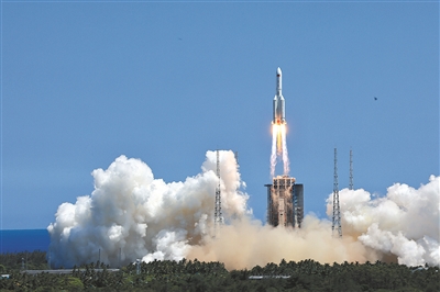 ■7月24日14时22分,搭载问天实验舱的长征五号B遥三运载火箭,在我国文昌航天发射场准时点火发射,约495秒后,问天实验舱与火箭成功分离并进入预定轨道,发射取得圆满成功。 新华社照片