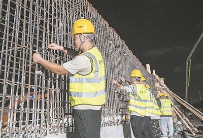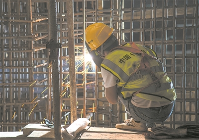 ■施工人员正在捆扎钢筋。 刘 栋 摄