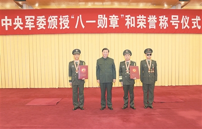 八一大楼仪式现场,部队官兵和文职人员代表整齐列队,气氛庄重热烈。下午4时,18名持枪礼兵正步入场、伫立两侧,颁授仪式开始,全场高唱国歌。中共中央政治局委员、中央军委副主席许其亮宣读习近平签署的中央军委授予“八一勋章”和荣誉称号的命令,中共中央政治局委员、中央军委副主席张又侠主持仪式。