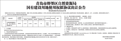 青岛市即墨区自然资源局国有建设用地使用权拟协议出让公告