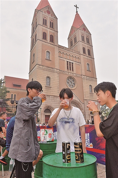 ■众多外地游客慕名游览青岛老城区,参加上街里啤酒节。 邢志峰 摄