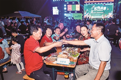 ■游客相聚在第32届青岛国际啤酒节即墨区分会场。 王 涛 摄