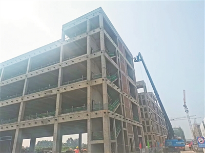 “我们项目于2021年4月份开始动工,现阶段5个建筑主体结构封顶,计划10月份开展设备安装调试,12月份调试完成并投入试生产。”项目负责人李永涛介绍。记者看到,多个建筑单体已经封顶,400余名工人正在进行内部装修及生产设备、机电安装施工。李永涛告诉记者,疫情期间,是当地政府和街道靠前服务,为他们协调了100名工人和建筑材料进场,才保证了项目如期推进。
