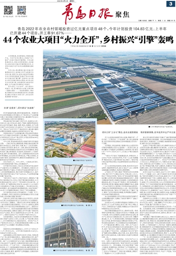 这只是青岛加快农业项目建设的一个场景。时下,一批体量大、带动力强的农业农村领域重点项目正加速推进,为乡村振兴增添“新动能”——