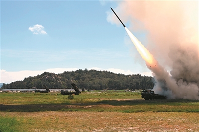 图四:8月4日,东部战区陆军某旅组织远火分队在台湾海峡实弹射击,完成精确打击任务。这是发射现场。 新华社照片