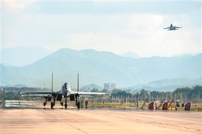 图一:8月4日,东部战区空军航空兵某旅同时出动多架战机,飞赴台岛周边海域执行任务,进一步检验部队实战能力。这是战机警戒巡航。
