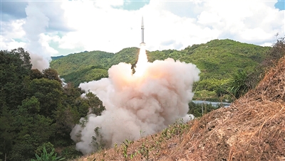 ■8月4日,东部战区火箭军对台岛东部外海预定海域实施火力突击。这是导弹发射升空(视频截图)。 新华社照片