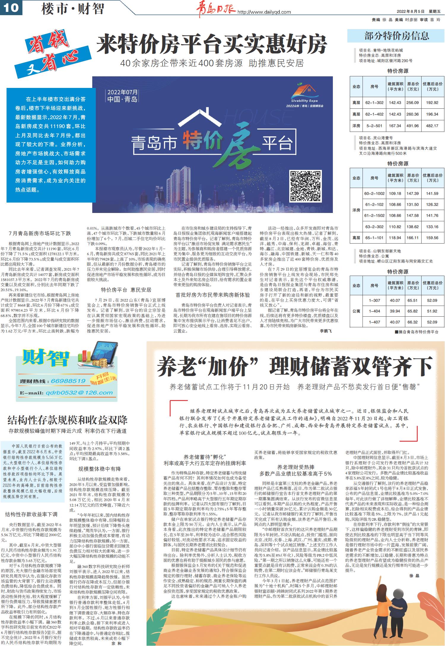 7月29日,在2022山东(青岛)宜居博览会上,青岛市特价房销售平台正式上线发布。记者了解到,该平台的设立宗旨是在认真贯彻国家宏观政策的基础上,为进一步提振市场信心,激活消费,拉动需求,促进房地产市场平稳发展和良性循环,助推惠民安居。