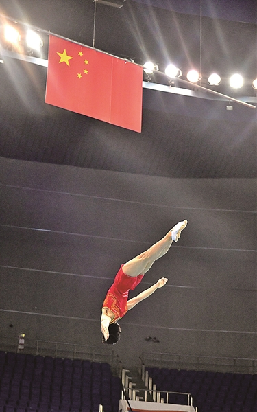 ■全国蹦床锦标赛比赛现场。王 雷 摄