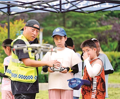 ■在晚报小记者团研学活动中,老师带领学生体验无人机操作。