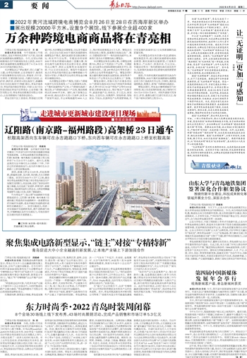 本报8月22日讯 今年省政府工作报告提出,坚定不移深化改革扩大开放,创办黄河流域跨境电商博览会。今天,记者从市政府新闻办召开的新闻发布会上获悉,2022年黄河流域跨境电商博览会将于8月26日至28日在西海岸新区举办。