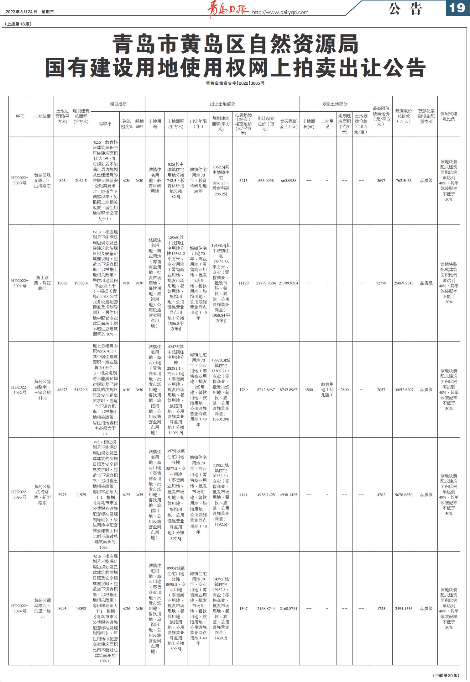 青岛市黄岛区自然资源局国有建设用地使用权网上拍卖出让公告