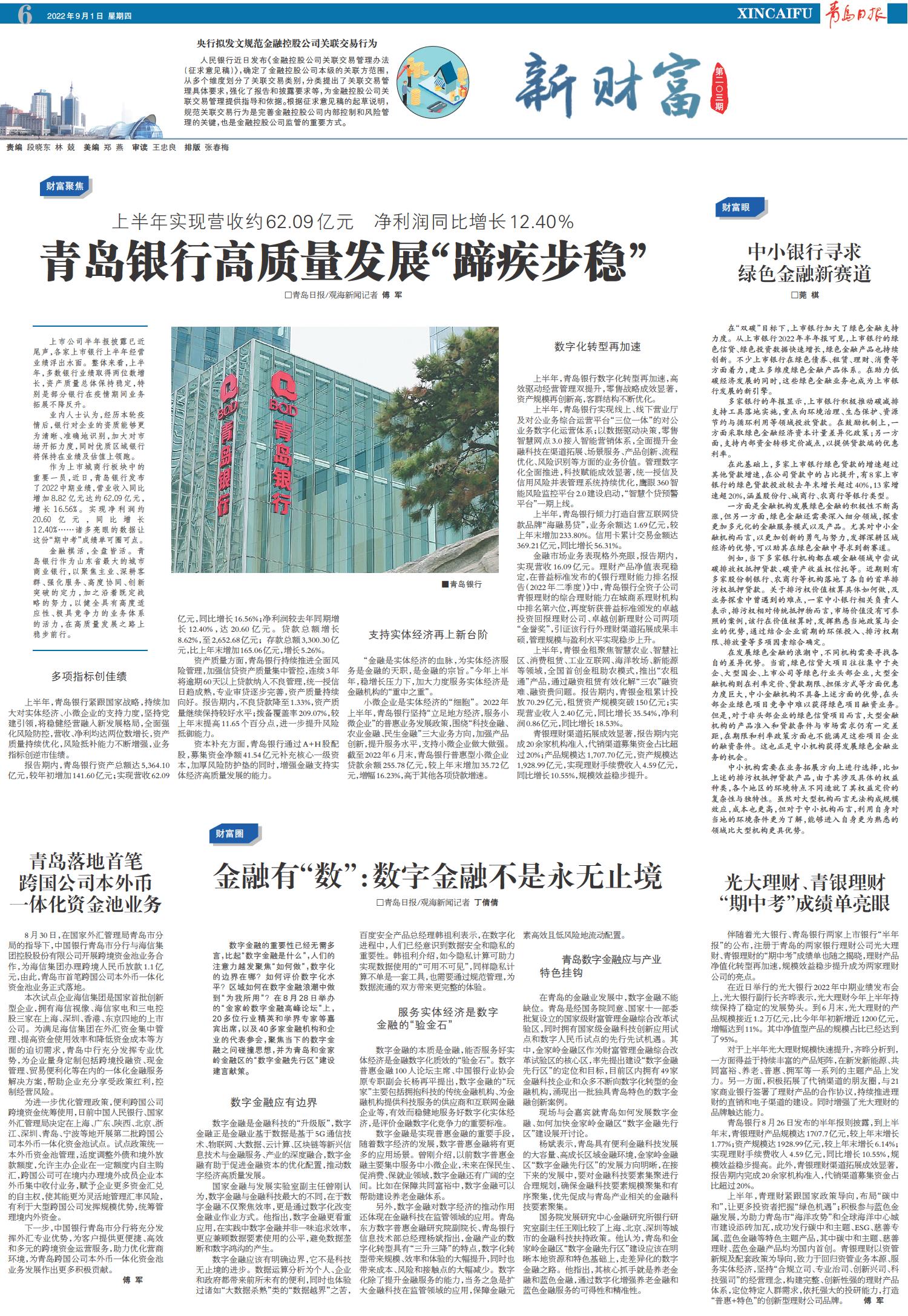 青岛银行高质量发展“蹄疾步稳”
