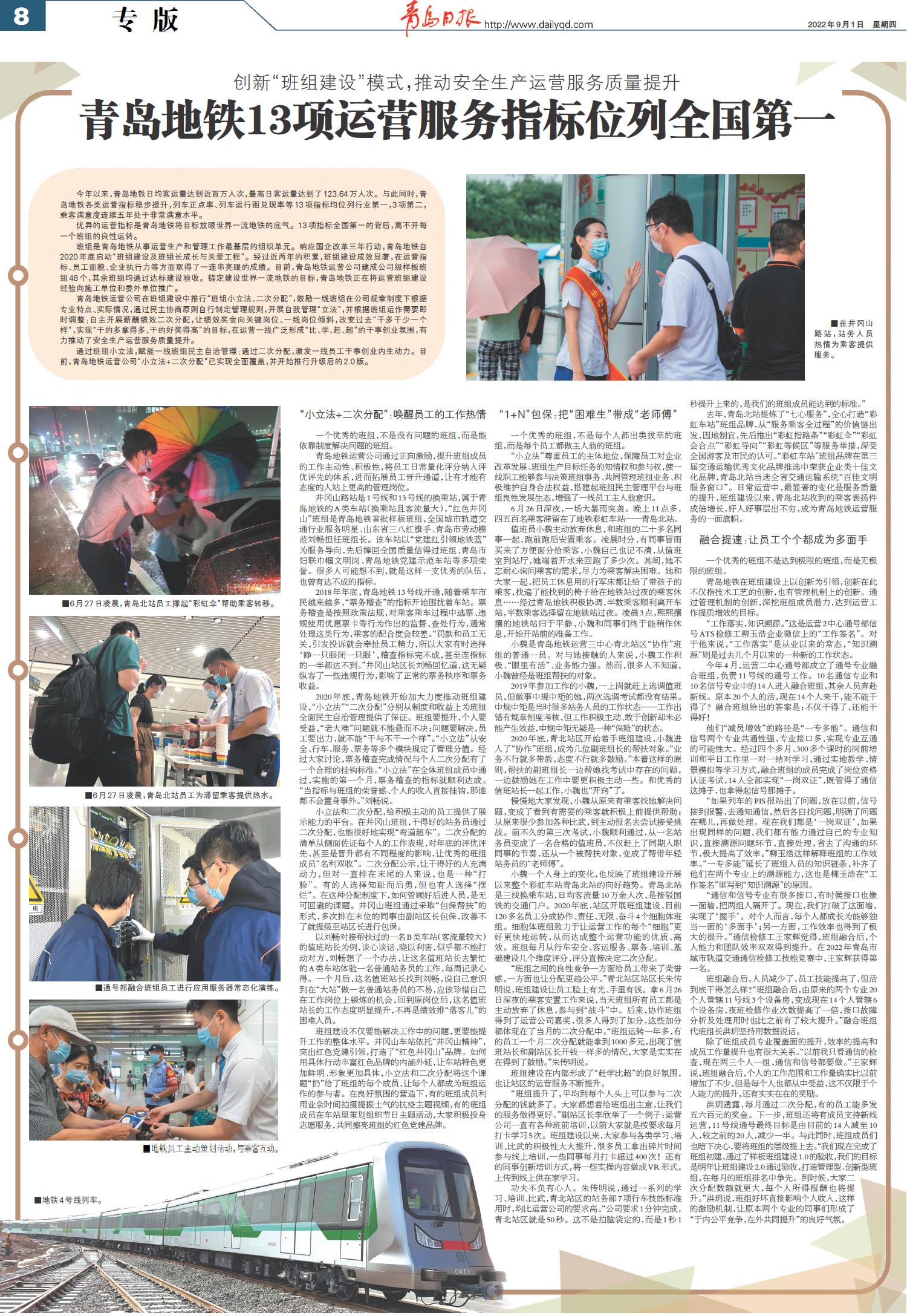 青岛地铁13项运营服务指标位列全国第一