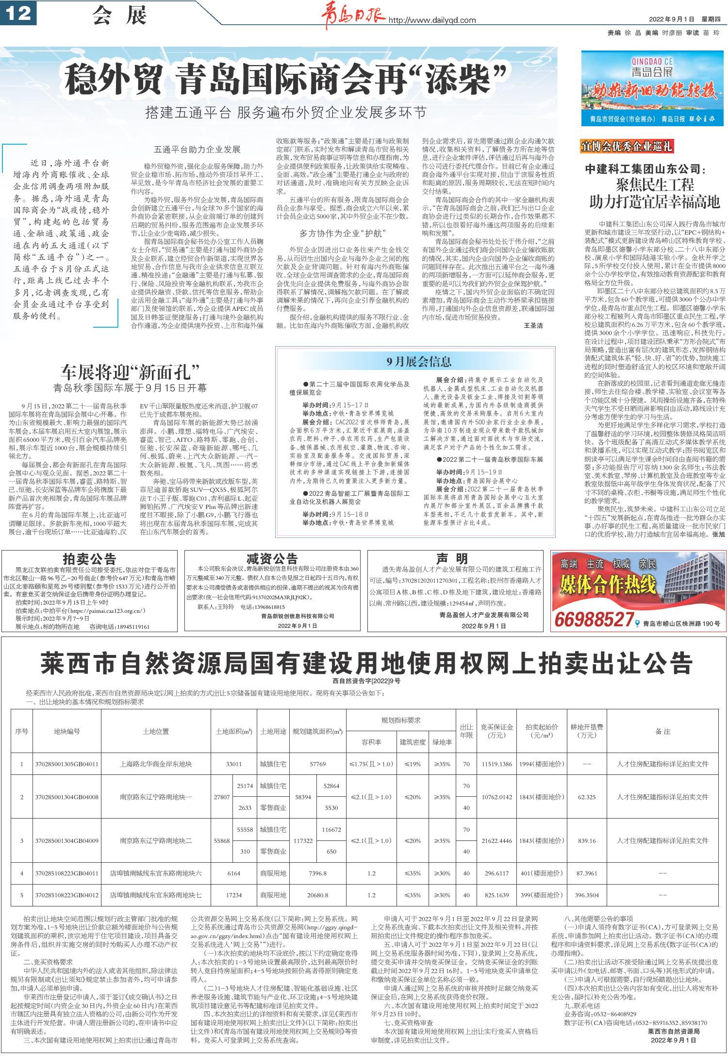 莱西市自然资源局国有建设用地使用权网上拍卖出让公告