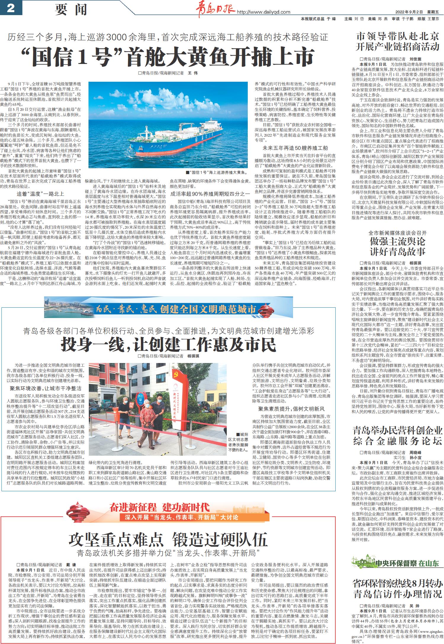 未来五年,青岛国信集团将陆续投资建设50艘养殖工船,形成总吨位突破1000万吨、年产各类海水鱼40万吨、年产值突破500亿元的深远海养殖产业链条,向海图强、经略海洋,打造国家海上“蓝色粮仓”。