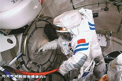■9月1日在北京航天飞行控制中心拍摄的航天员刘洋正在出舱的画面。 新华社照片