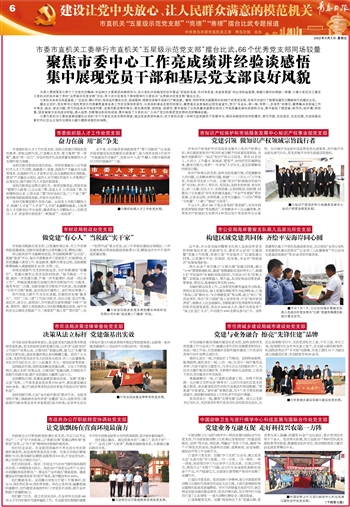 擂台比武时,党支部书记或优秀党员代表聚焦重要业务工作在全国争先进位、以更高标准走在前列的情况,聚焦重点业务指标达到全省首位、努力“当龙头、得一等、争第一、多拿奖”的情况,聚焦解决本领域工作中难点、痛点、堵点问题,努力创造高水平制度创新、政策创新成果的情况,登台晒成绩、讲经验、谈感悟,集中展现了以高质量党建推动各项工作高质量发展的思路和方法,集中展现了强党建、转作风、优环境、树形象、促发展等方面的成功经验、感人故事、创新做法和实际成效,集中展现了市直机关广大共产党员和基层党支部的良好精神面貌。