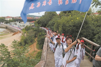 前几天,一年一度的青岛五十八中“拥抱海洋”健步行活动如期举行。全体高一新生们沿海岸线而行,成为海岸线上一道靓丽的风景线。这项30公里拉练称得上是青岛高中军训中最硬核的项目,已经连续开展12年。与往年不同的是,今年,青岛五十八中教育集团内的五十八中校本部、五十八中高新学校和五十八中杜威实验学校的1700多名高一新生全部参与其中,人数更多,队伍更长。这也是青岛五十八中办学规模持续扩大的直接体现。
