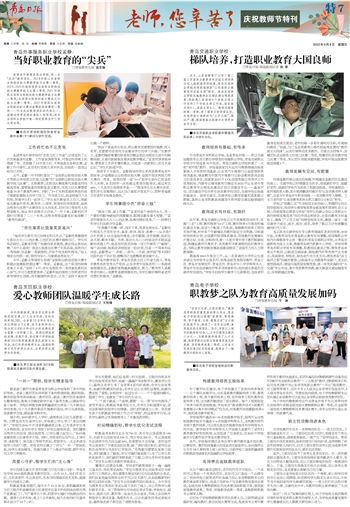 青岛市教学能手、青岛市名班主任工作室主持人、青岛市教育系统优秀共产党员、山东省青年技能名师……各级荣誉接踵而至,孟静却变得越来越踏实、努力。“教书育人是教育者的初心,而教育是潜移默化的,为学生做好榜样是老师的责任和使命。”孟静说。