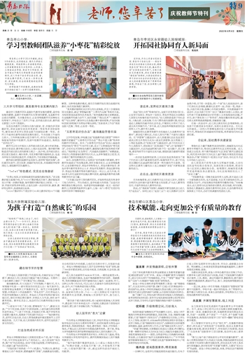 “不能把孩子培养成一个个小机器人。”杜鹃认为,教育应尊重幼儿的个体差异,要跨越教育“围墙”,突破教室的局限,充分利用园内外的资源,让他们在自然中学习,在探索中成长。青岛大学附属实验幼儿园开设多种特色“悦享”课程,除了70%省市要求课程,还有绘本阅读、自然拓展、社会实践、混龄课程。