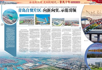 今年8月,商务部国际贸易经济合作研究院发布的青岛自贸片区三周年综合评估报告显示,青岛自贸片区在全国67个片区中处于第一梯队,有力彰显了改革开放排头兵的示范引领作用。