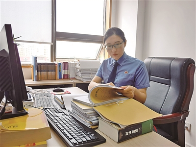 ■张芹在查看案卷资料。