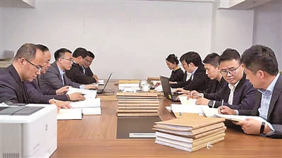 ■青岛市纪委监委第五监督检查室在研究工作。