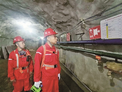 ■万清华(右)带队深入矿井检查。